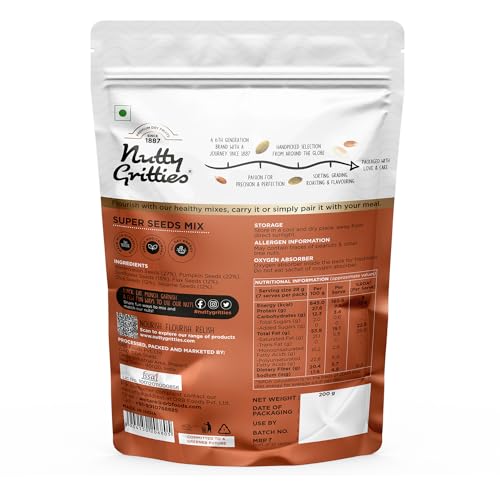 Nutty Gritties Super Seeds Mix can be eaten as a pre/post workout snack. Grab a pack at 4pm with your cup of tea or snack guilt-free whenever you get hunger pangs! As an ingredient: Add some in your cookie batter or while making healthy oats and muesli granola bars for an added dose of nutrition! You can also add some to your favorite smoothie or add to your favourite halwa Top up on salads, smoothies, yogurt, oats
