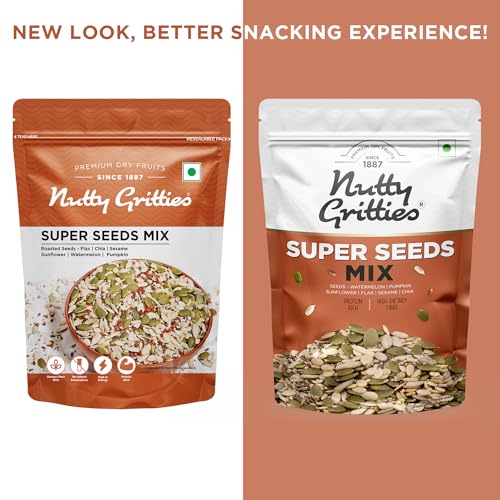 Nutty Gritties Premium Super Seed Trail Mix 200g – 6 Super Seed in 1 Mix |Roasted Unsalted Mix Seeds – Flax, Chia, Sesame, Sunflower, Watermelon, Pumpkin Seeds, Mixed Seeds for Eating