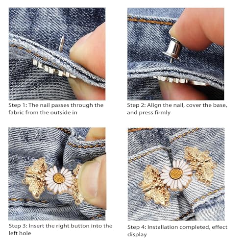 Made of great quality material, durable and safe for use. Easy to Use: These button pins are very easy to use on jeans. No sewing, no tools, you can install the buttons easily with bare hands.