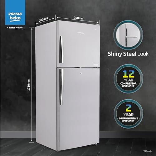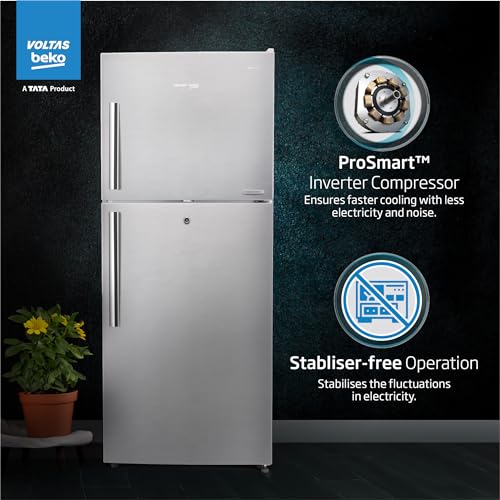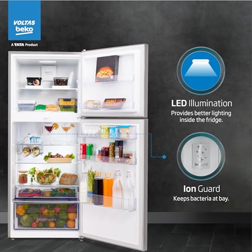 Voltas Beko 470 L 2 Star Inverter Frost-Free Double Door Refrigerator, Store Fresh+ , Neo FrostTM Dual Cooling(RFF493IF, Silver, 2022 Model)