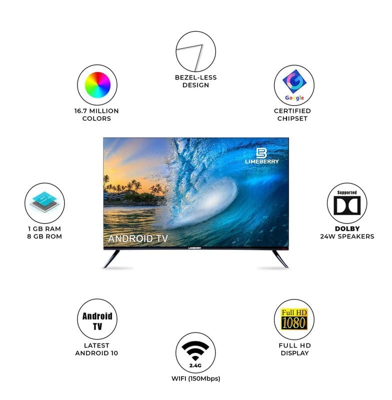 LIMEBERRY 43 Inch Frameless Full HD Smart Android LED TV Android 11, with Remote,Dolby Soundbar Speakers inbuilt, Black (LB431CN5)