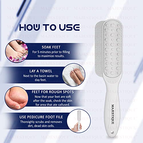 Start with the coarse sand surface to remove calluses and dead skin. Follow with the fine sand surface to improve and tender the skin of the feet. It also functioned well both in wet and dry, but for better results, we recommend soaking your feet in warm water for 10-15mins to soften your skin before using.