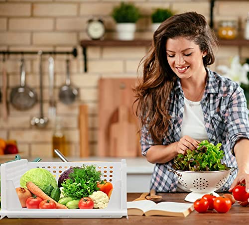 MESH SHAPE DESIGN: Stackable baskets that are built with plastic body and mesh design, convenient to know clearly what’s inside, perfect to keep things fresh