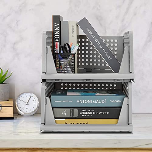 SpaceOrganizer Plastic Stackable Wardrobe Storage Box,Foldable Clothes Shelf Baskets, Folding Containers Bins Cubes, Perfect For Kitchen, Office, Bedroom & Bathrooms (2Pcs-Small, Grey)