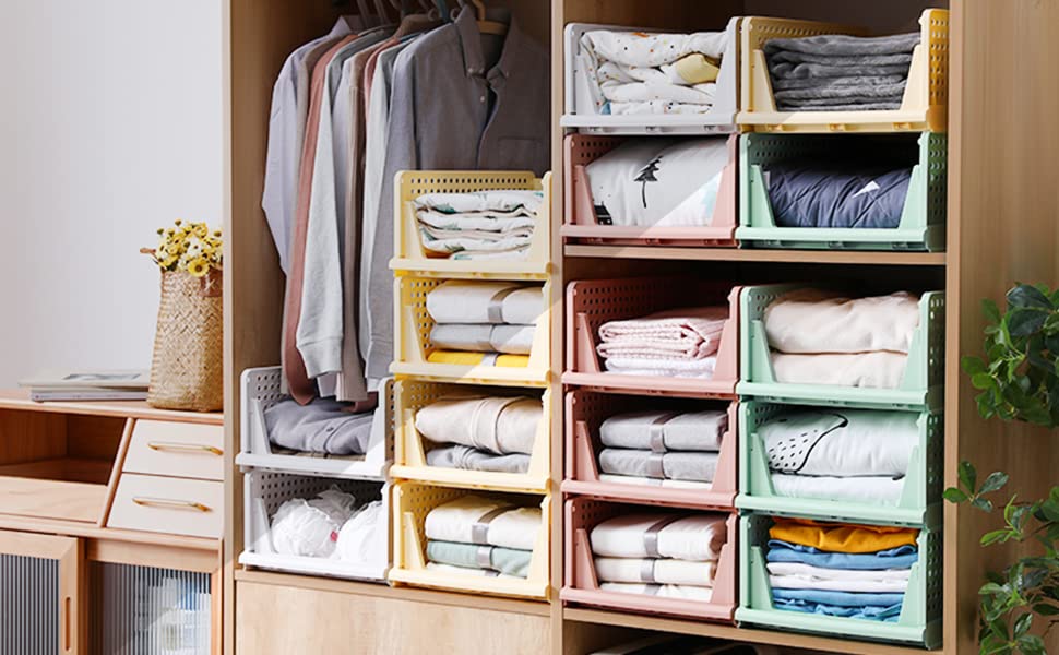 STACKABLE CLOTHES STORAGE BASKETS: wardrobe storage shelves can be stackable which make home space organized, max the use of vertical space,