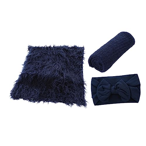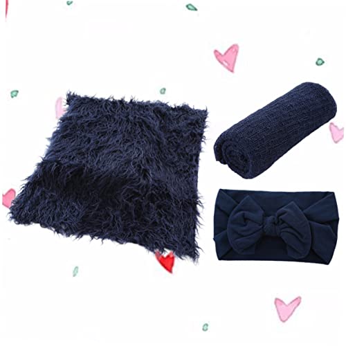 Newborn blanket: 3pcs furry wrap cloth blanket bowknot set wrap cloth blanket kit photography props