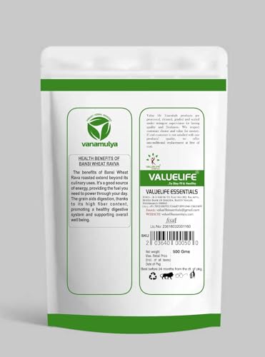 Valuelife Bansi Rava Roasted extend beyond its culinary uses. It’s a good source of energy, providing the fuel you need to power through your day. The grain aids digestion, thanks to its high fiber content, promoting a healthy digestive system and supporting overall wellbeing.