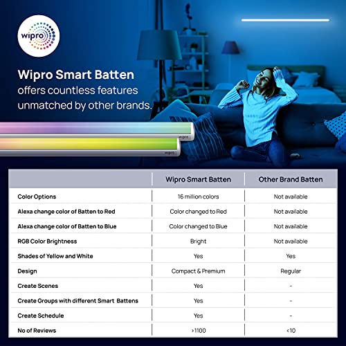 Dimmable: Save energy by adjusting brightness of your Smart batten between 10% to 100% as per your need