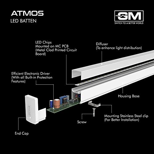 Slim design with decorative end cap. High performance diffuser for soft and glare free light