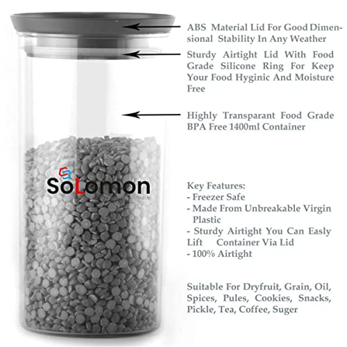 Solomon XLLENT Premium Series New Unbreakable Sturdy Transparent Plastic Airtight Containers are designed to meet your need for store different volumes of products. It comes with capacity options of 500 ml, 900 ml and 1400 ml, which can be used to store cereals, spices, dry fruits, salt, sugar, pulses, snacks, etc.