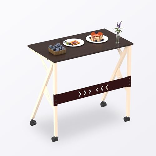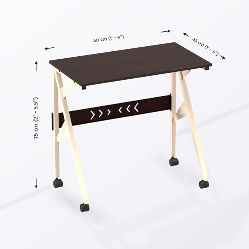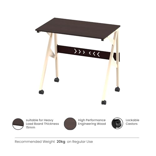 TABLE MAGIC V-Line 80 Laptop Table Mat Finish Study Computer Desk with Castors Steel Engineered Wood Epoxy Powder Coating 80x45x75cm (V-Line 80 Wenge)