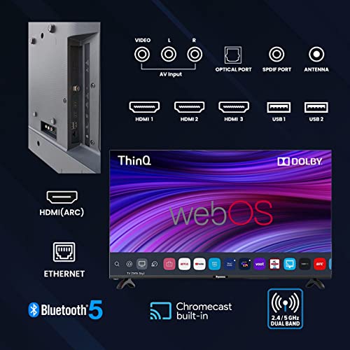 Connectivity: 3 HDMI ports to connect set top box, Blu-ray speakers or gaming console | Alexa Built-in | 2 Way Bluetooth 5.0 | Dual Band Wi-Fi | Optical Output | 2 USB ports to connect hard drives or other USB devices | 2 AV Input Slot | 2 AV Output Slot | 1 Headphone Jack | 1 RF Slot