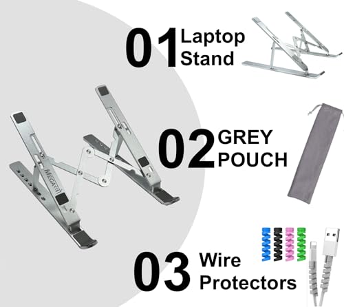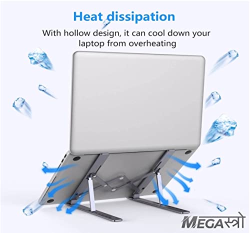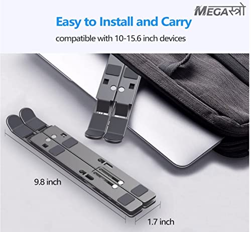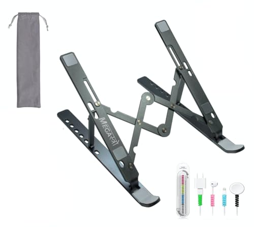 MegaStro® Laptop Stand for Desk with 7 Adjustable Angles, Aluminum Ergonomic Foldable Portable Compatible with All Brands 6-17.3 [with Pouch] [with Wire Protectors] (Metallic Grey)