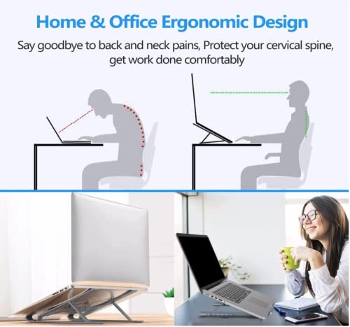 ✅Adjustable & Ergonomic: MegaStore Laptop stands offers nine modes for height adjustment, elevating your laptop from 1.35 inches to 5.34 inches above the tabletop. Adjust to comfortable operating angle and height based on your actual need. And the ergonomic design makes for easy watching and typing, relieving neck, shoulder and spinal pain.Our adjustable laptop stand is your best choice.