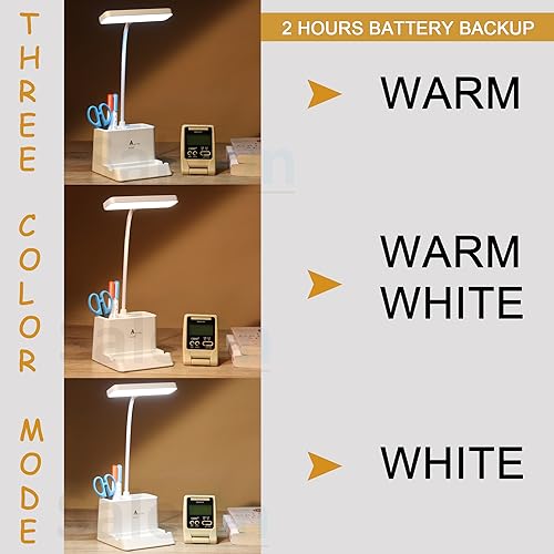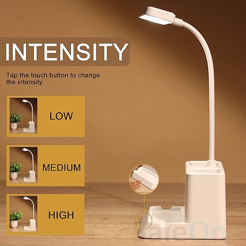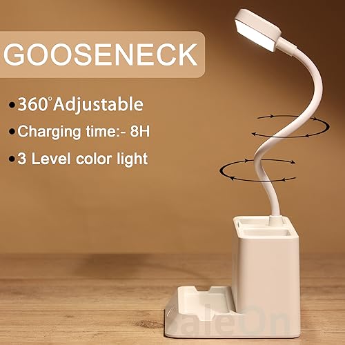Flexible Gooseneck: Easily adjust the lamp’s angle for personalized illumination.Convenient Phone Stand: Keep your device at hand for easy access and hands-free use.Built-in Pen Holder: Stay organized with a dedicated space for your writing essentials.Eye-Caring LED: Enjoy comfortable lighting that minimizes eye strain for enhanced productivity.