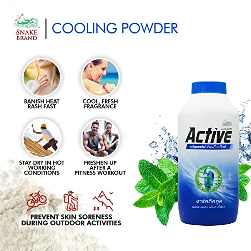 Snake Brand Cooling Powder provides effective relief from prickly heat rash, skin irritations and is especially useful in hot weather. Contains refreshing natural essential oils. Use daily after taking a shower, or as needed.