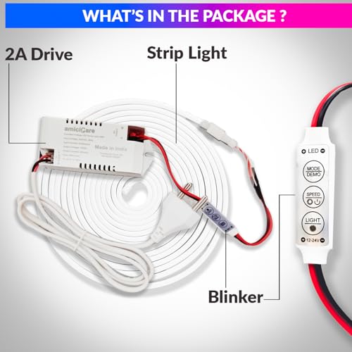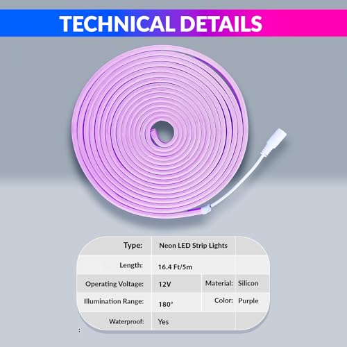 amiciCare Purple Neon LED Strip Light | 5m Long, Waterproof Decoration String Light with DC12V Adapter and Blinker, 5 meters