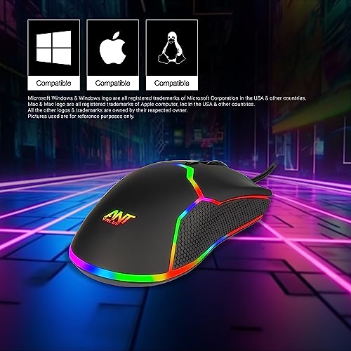 Ant Value GM1001 USB Wired Gaming Mouse, 6 Adjustable 12800 DPI Computer Mouse, Optical Sensor 13 RGB Mouse with software, Gaming Mouse Wired with 6 Programmable Buttons, Ergonomic PC Gaming Wired Mouse for Laptop / PC – Black