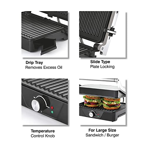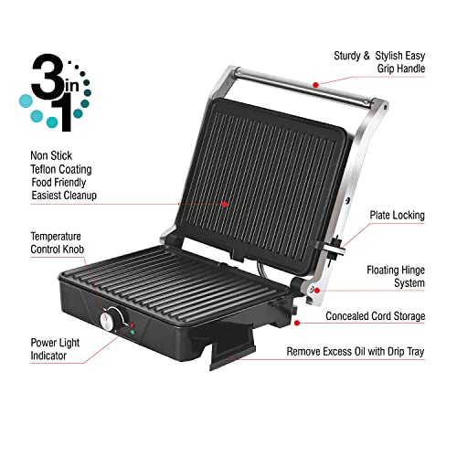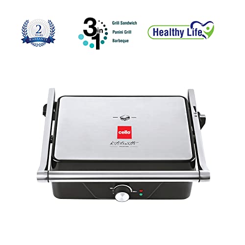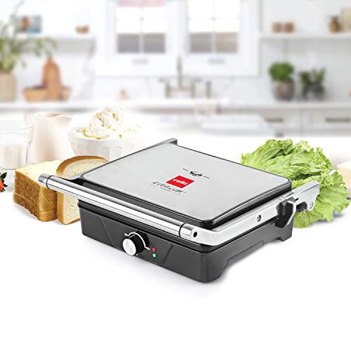 Cello Super Club 1000 Jumbo Sandwich Maker with Auto Shut Off & On & Indicator Light, Silver, 2000 W, (70FSM018SL)
