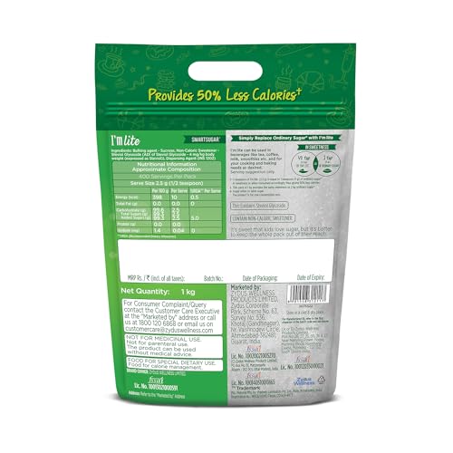 I’m lite is a sugar blended with the goodness of Stevia. It gives 50% lesser calories than normal sugar while providing the same level of sweetness. It can be used in beverages like tea, coffee, milk, smoothies etc. and for your cooking and baking needs as desired