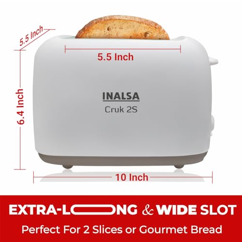 TYPE:- INALSA Toaster 2 Slices WATTAGE: 750W; Bread Toaster 2 Slice; COLOUR: White.