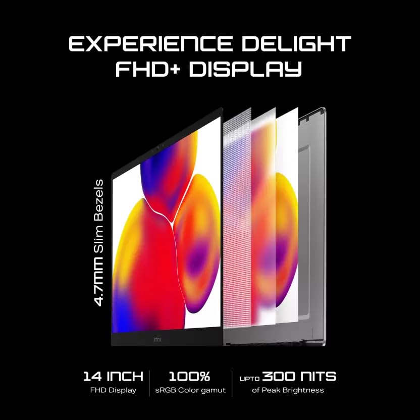 This laptop has 35.56 cm (14) FHD display with 100% sRGB Colour Gamut to deliver clear and sharp visuals. The 300 nits of brightness enables you with 100% colour accuracy so that you can indulge in the stunning visuals displayed on this laptop. The 4.7 mm thin bezel display enhances your overall visual experience and gives more screen space.