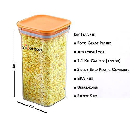 MATERIAL: 100% BPA Free Food Grade Virgin High-Quality Plastic. Content – 1100 ml Food Storage Jars in exciting color lids. Made In India