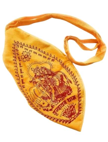 Beautiful Chanting Bag made of 100% cotton printed cloth, durable, soft and washable. This bag has a zipper pocket. The bag has a proper string for proper hanging. Mala pocket for worship. Crafted from cotton material. Comes in Radha Krishna Printed.Made In Vrindavan Pack Of 2
