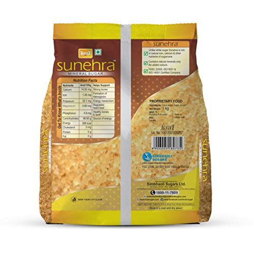 Trust Sunehra Mineral Sugar, Unlike white sugar sunehra is rich in natural iron, calcium & other nutriants of sugarcane, contains natural minerals only, no added colours, contains calcium, iron, potassium, magnesium, phosphorus, carbohydrates, energy, cholesterol, protein, and Fat, These Nutrients helps our body make our bone strong, formation of hemoglobin, energy metabolism, Regulated Heart beats, and maintain healthy bones & teeths, carbohydrates are good source of energy.