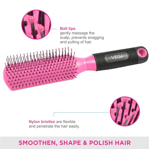 Ideal for daily styling of hair that require body and volume. These brushes are designed to smoothen, shape and polish all hair lengths and textures. Ball tipped nylon bristles gently massage the scalp, help in detangling and add root lift. Suitable for all hair types. Mostly available in rectangle shape.