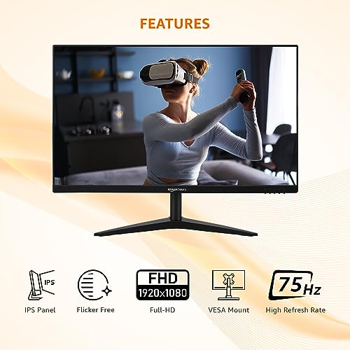 Introducing Amazon Basics 27″ Full HD IPS LCD monitor. Immerse yourself in breathtaking visuals and vibrant colors with our ultra-thin display. Experience the magic of 1920×1080 resolution and wide 178-degree viewing angles, delivering unparalleled image quality. The sleek frameless design adds a touch of elegance to any space. With flicker-free technology and a 75Hz refresh rate, enjoy smooth and fluid motion. Enhance your multimedia experience with built-in 2 x 2W stereo speakers. Plus, VESA mount compatibility allows for seamless installation. Get the Amazon Basics monitor today!