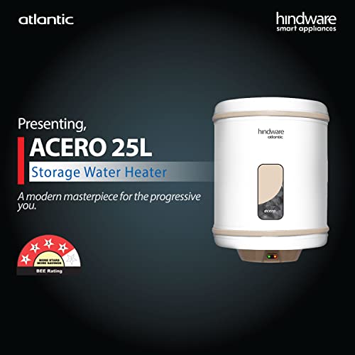 Hindware Atlantic Acero 25L, 2Kw Storage Wall Mounted Water Heater, White