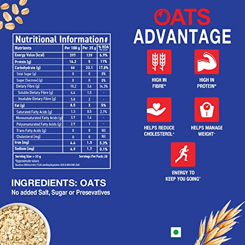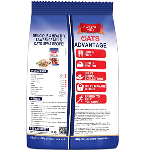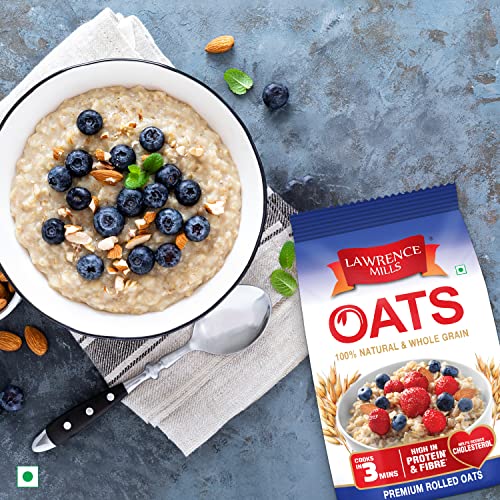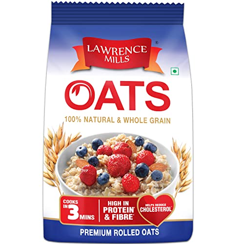 EASY TO COOK BREAKFAST CEREAL: Ready in just 3 minutes! Lawrence Mills Premium Rolled Oats can be eaten sweet or savoury or add them as a wholesome ingredient in your favorite dishes, such as Idli or Poha or Masala Oats or whip some classic oatmeal cookies. Enjoy the wholesome benefits of this 100% Wholegrain breakfast cereal in any number of meals or snacks, any time of day.