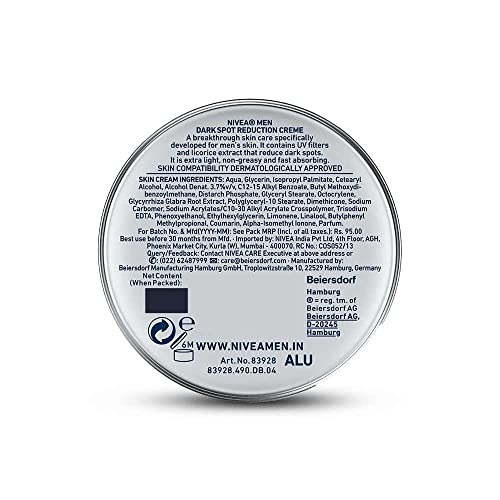 The Nivea Dark Spot Reduction Crème is specifically formulated for men’s skin and is a daily use moisturizer