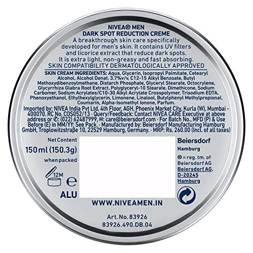 Nivea Men Creme, Dark Spot Reduction, Non Greasy Moisturizer, Cream With Uv Protect, 150 ml