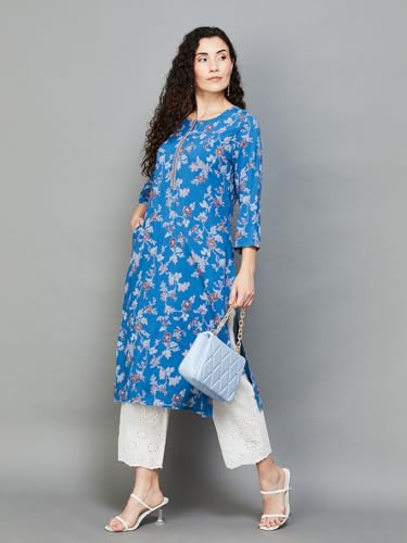 Melange by Lifestyle Women Blue Viscose Rayon Kurta
