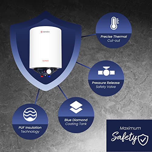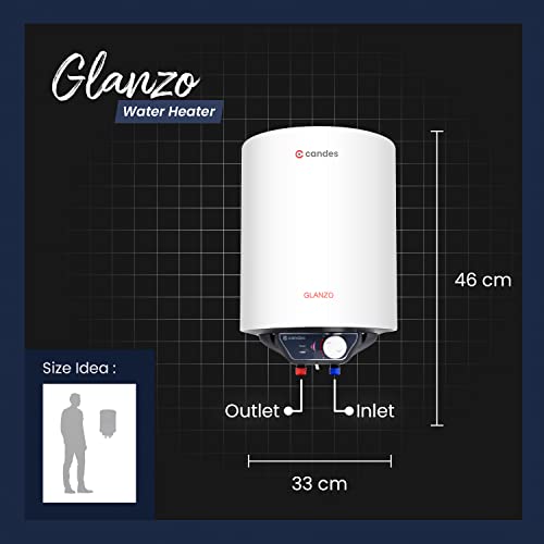 Candes 25 Litre Glanzo 5 Star Rated GlassLine Automatic Storage Electric Water Heater – 8 Bar with Installation Kit, Metal Body White (10 L)