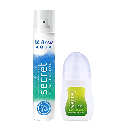 Secret Temptation presents you it’s two amazing pack of freshness for women – Secret tempatation Active Roll on and Aqua perfume body spray roll on combo pack for women. This deo roll on for women offers you the refreshing fragrant day and leave not any moment to give you the divine experience. Secret Temptation Active Lifestyle Roll-on is specially designed for an active lifestyle of women to get fresher, smoother and even-toned underarms easily. With deep moisturizing care and 0% alcohol this antiperspirant deodorant roll-on reduces skin irritation and gives you soft and clean underarms. Add Secret Temptation Active Lifestyle Roll-on deo to your daily routine for beautiful even-toned underarms. Secret temptation Te Amo Aqua Perfume Body Spray is a hydrating and re-energising no gas body spray for women with freshness that lasts all day long at work. A balanced fragrance perfect for office wear, relax with the reassuring cool of aqua. A cooling blend of fragrant notes provide a calming influence for distraction-free excellence at work. The best Secret Temptations Perfume for women who balance work and play with a refreshing candour.