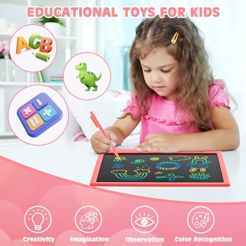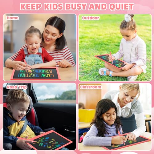 🎁【Portable & Durable】The case of doodle board for kids is made of durable ABS material, add round corner design which has good shock resistance and drops resistance. The colorful writing tablet weights only 325 grams and has only 0.51 inches thickness, easy to place in school bags, handbags, travel bags. Easy to carry, suitable for multiple occasions: airplane, car, restaurant, sofa, living room, outdoor places etc.