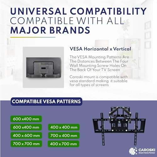 【Universal TV Mount】This TV wall mount is constructed from high quality steel materials and fits most 32-75 inch TVs with VESA size 30*80mm to 600*400mm , Weight Capacity up to 40KG. Please check the VESA pattern, weight, and size of your TV before purchasing.