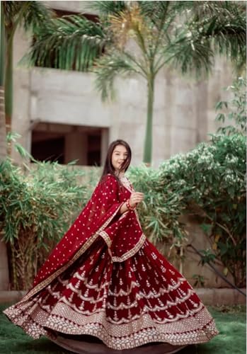 Welk Embroidered Semi Stitched Lehenga Choli Set (MAROON1)