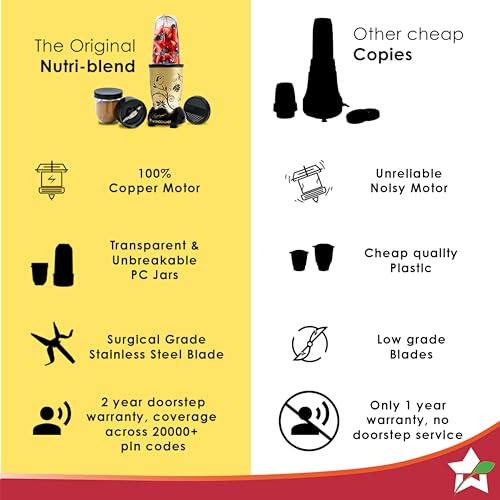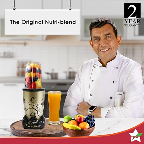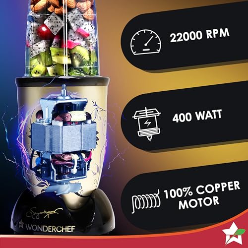 Wonderchef Nutri-blend Mixer, Grinder & Blender|400W 22000 RPM 100% Full Copper Motor|Stainless Steel Blades|2 Unbreakable Jars|2 Years Warranty|Recipe book by Chef Sanjeev Kapoor|Champagne