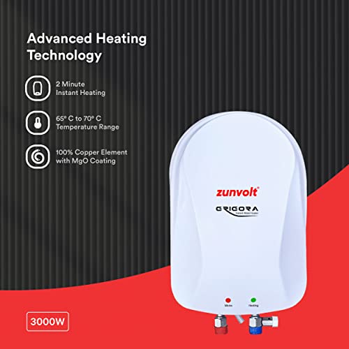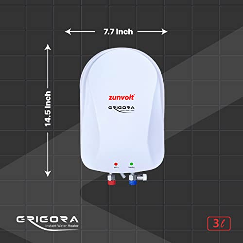 ZunVolt Grigora Instant Water Heater 3L (Geyser) White Body With Dual Thermostat