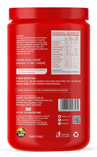 Contains Wheat, oat, corn, Brown rice flakes : Listing specific grains like wheat, oats, corn, and brown rice provides transparency about the cereal’s composition. Consumers can easily identify the grains used, promoting informed choices.