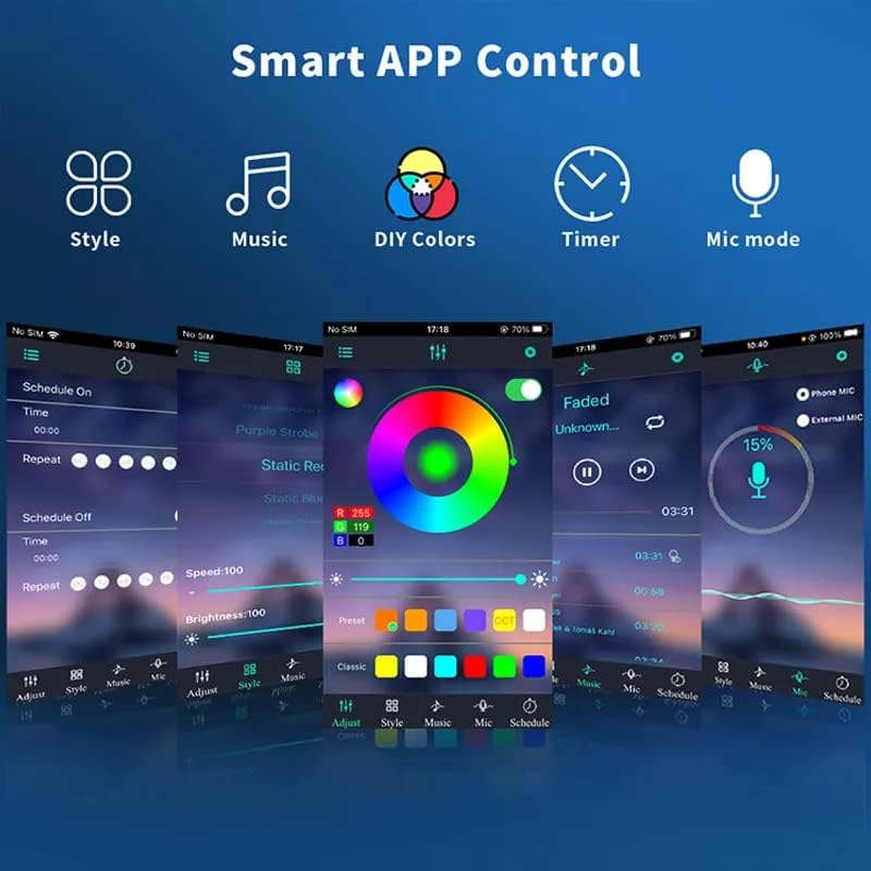 5050 Led Strip light is, enabling remote control as well as mobile App, Users can adjust color, brightness, and choose from various effects, Music sync reacts to music beats, Set timers for on/off, color change, or color effects