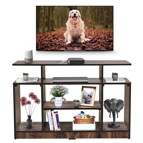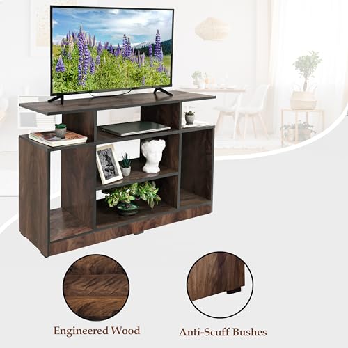 Modern Contemporary Design: This TV shelf comes flat packed which is built up of engineered wood with modern contemporary design and pre-laminated matte finish that is durable and long-lasting. It has 5 compartments for storage and display. This TV console has scuff proof bush in the bottom so that it can be moved with ease.