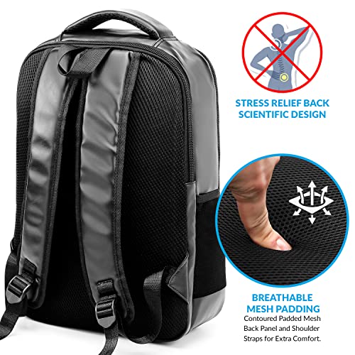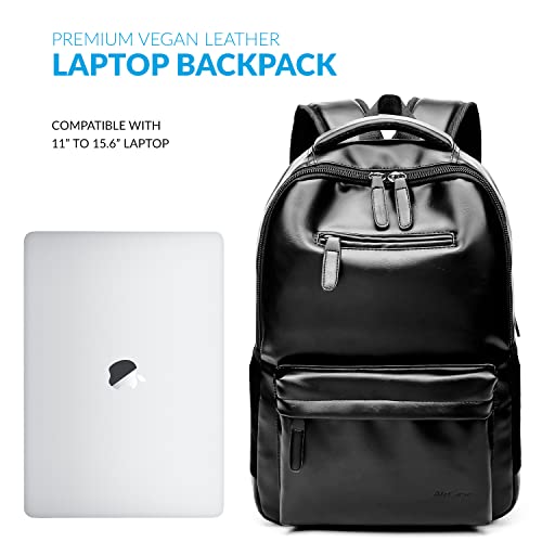 AirCase Premium Backpack fits upto 15.6″ Laptop, Lightweight & Waterproof Vegan Leather, Spacious Bag for Office/ Travel/ College, Men & Women, Glossy Black