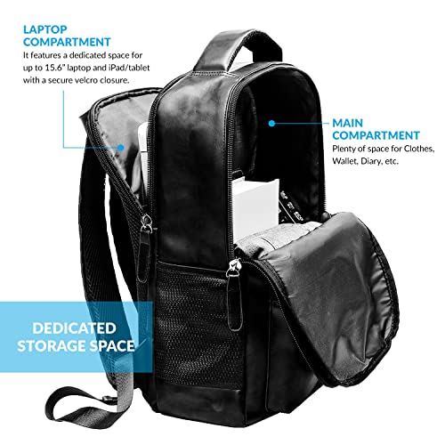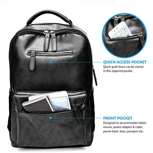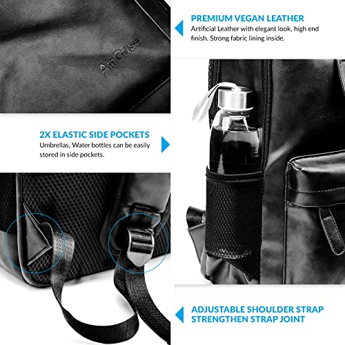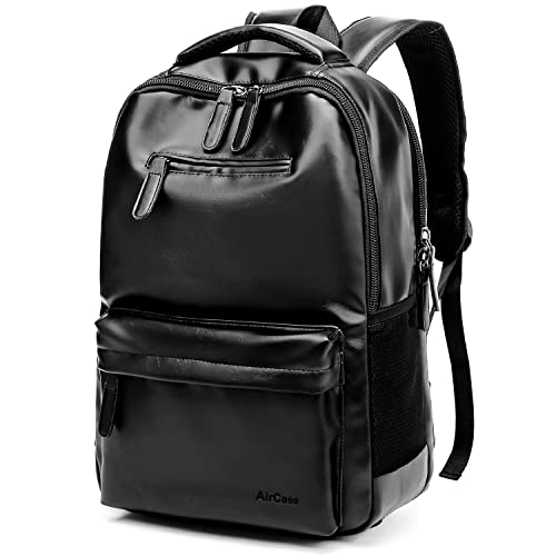 AirCase Vegan Leather Laptop Bag Backpack for Men & Women, 22 l, Glossy Black, Fits upto 15.6 inch laptop, Multiple compartments, Padded shoulder straps, for Travel, Office/College,1 year warranty