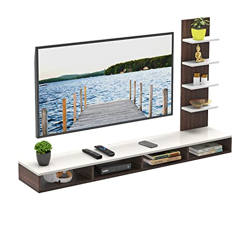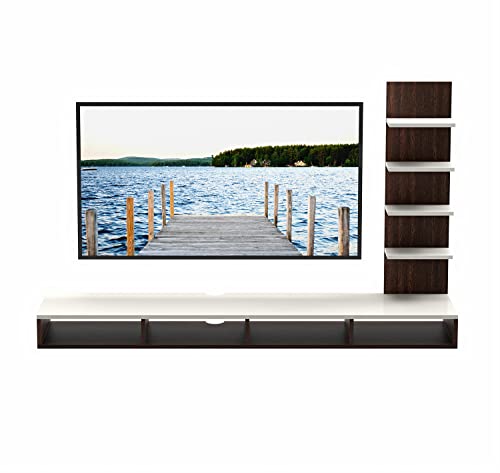 BLUEWUD Primax Engineering Wood Wall Mount TV Entertainment Unit Set Top Box Stand/TV Cabinet with Shelves for Books & Décor Display Unit, Ideal for 50 Inches (Wenge & White/DIY)