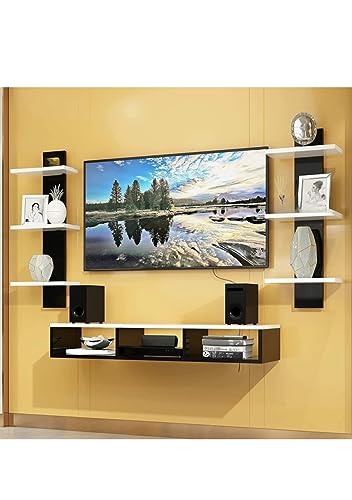 SPACE SAVING – Large Countertops Ensure Ample Storage Space. Wall-Mount Design Doesn’t Take Much Space and Frees Up Valuable Floor Space. The Middle Compartment is Intended to Keep Your Set-Top Box While Books, Decorative Items & 4 Fully Functional Floating Open Shelves for Organize and Display Your Decorative Objects.